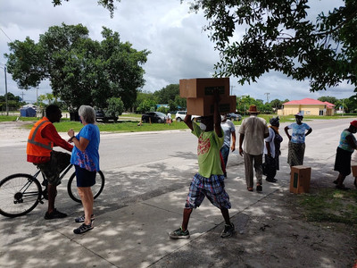 During that hot afternoon of June 12, in addition to hundreds of pounds of locally grown jackfruit, mangoes, banana, watermelon, greens, cowpeas and lettuce, Misión Peniel was experimenting with boxes of groceries donated by a regional food bank. Each bulky box contained the same contents; a large bag of either cooked chicken or pork, a package of cheese and small cartons of two percent milk as well as apples, oranges, and a bag of celery.